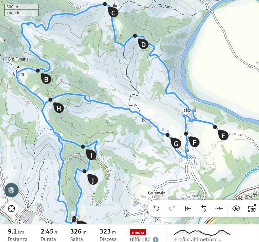 Itinerario ad anello di 30 km e 1200m di dislivello, sia per MTB che E-bike, in collaborazione con a.s.d. Cairo Bike di Bikers Tree