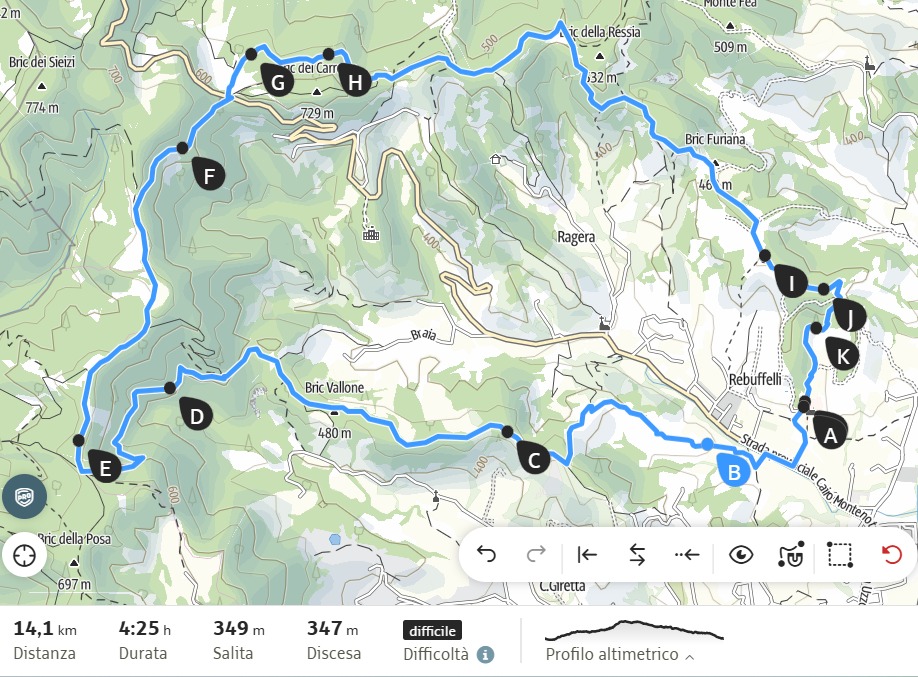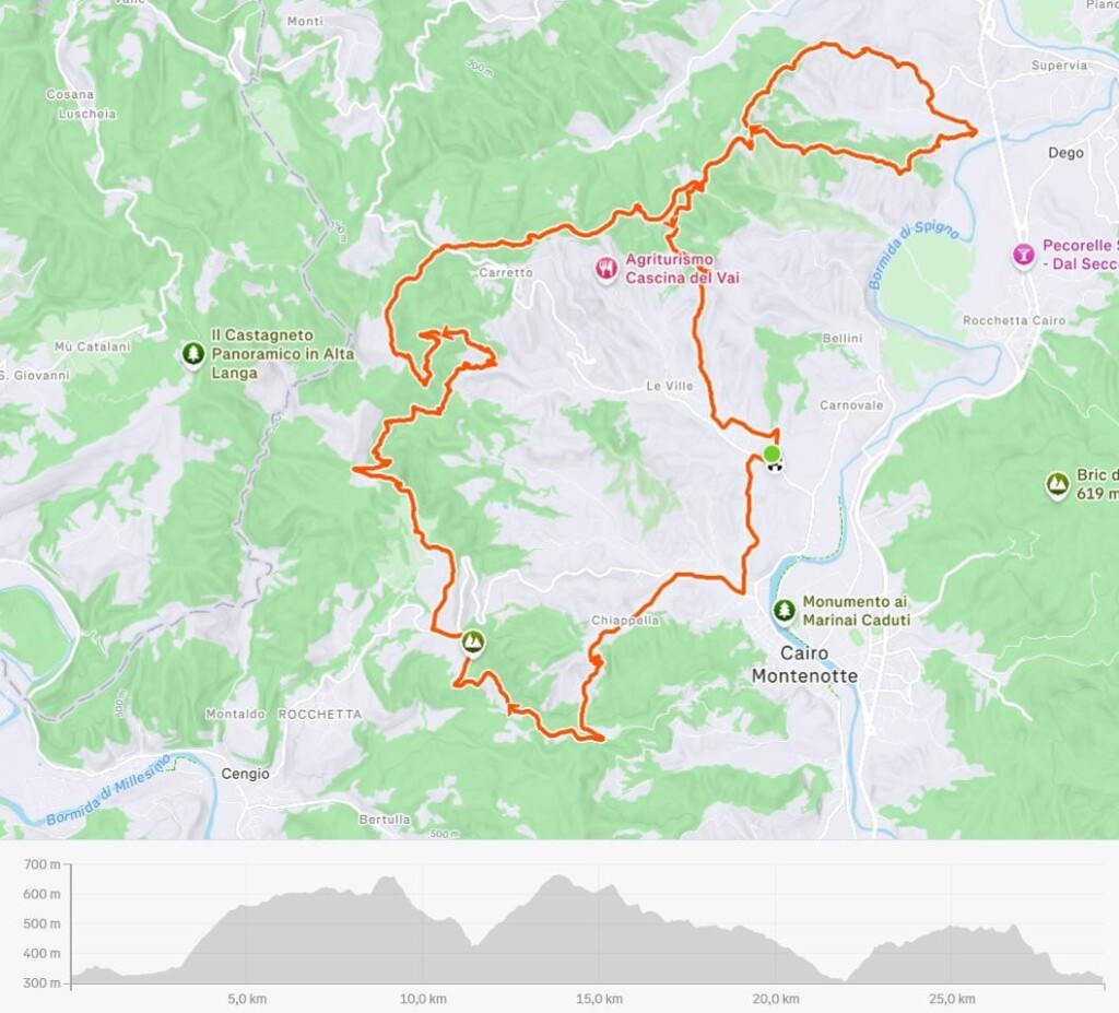 Un itinerario ad anello di 30 km e 1200m di dislivello in collaborazione con a.s.d. Cairo Bike di Bikers Tree, prenotazione obbligatoria.
