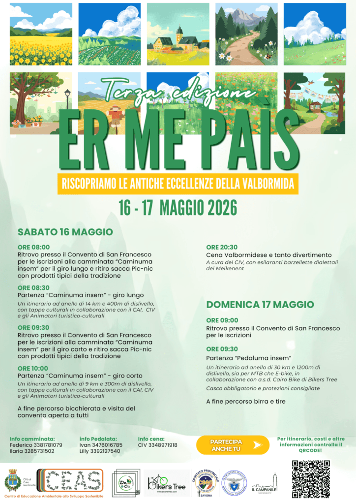 La Terza edizione di “Er Me Paìs” di Cairo Montenotte, organizzata per riscoprire le antiche eccellenze della Valbormida, si svolgerà il 16 e 17 Maggio 2026